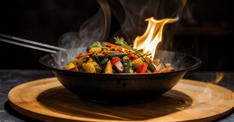Stir-Fry Technique and Wok Hei — Thermal Mass, Leidenfrost, and High-Heat Chemistry